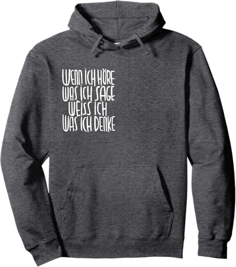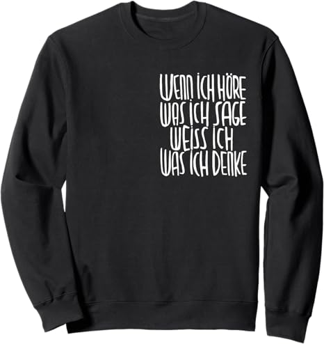 Der Spruch „Wenn ich höre, was ich sage, weiß ich, was ich denke“ spielt humorvoll mit dem Konzept, dass man seine Gedanken erst beim Aussprechen richtig ordnet und versteht. Manchmal wissen wir erst genau, was wir denken, wenn wir unsere Gedanken laut aussprechen – quasi als Selbstreflexion. Der Spruch ist oft ironisch gemeint und beschreibt eine gewisse Spontaneität oder Selbstironie.